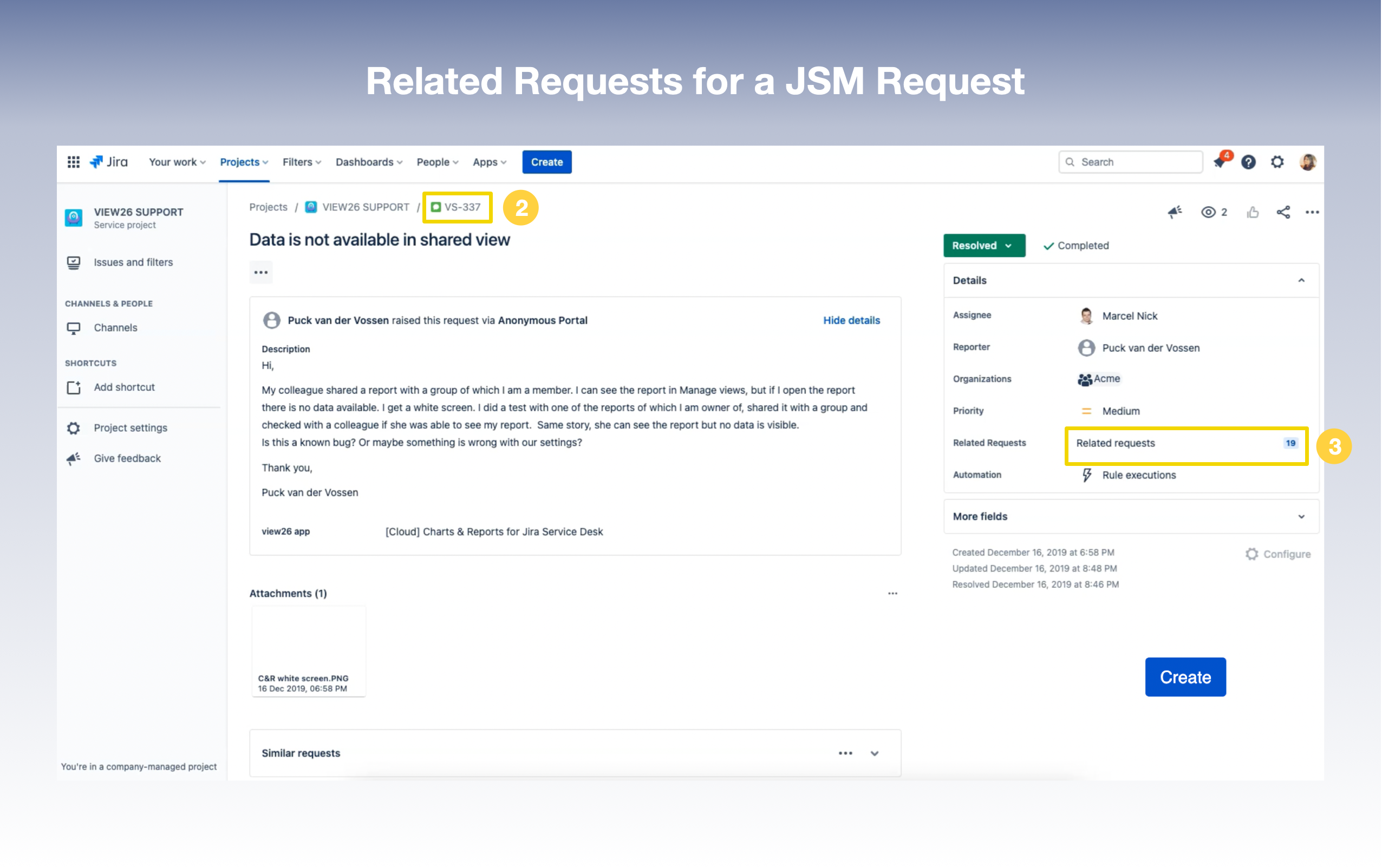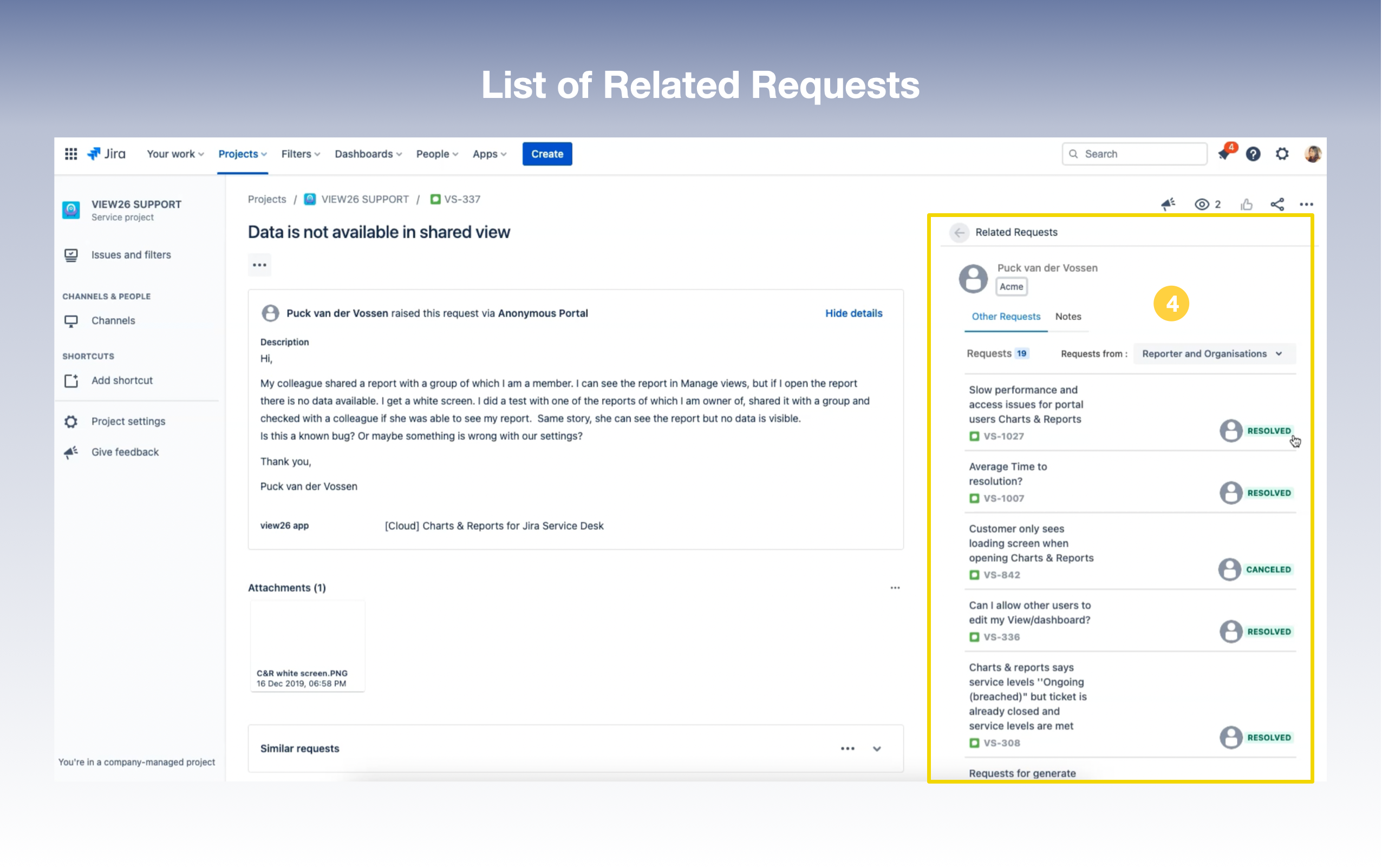 The count of the Related Requests appears on the right panel. Click on Related Requests to view the list of all the requests