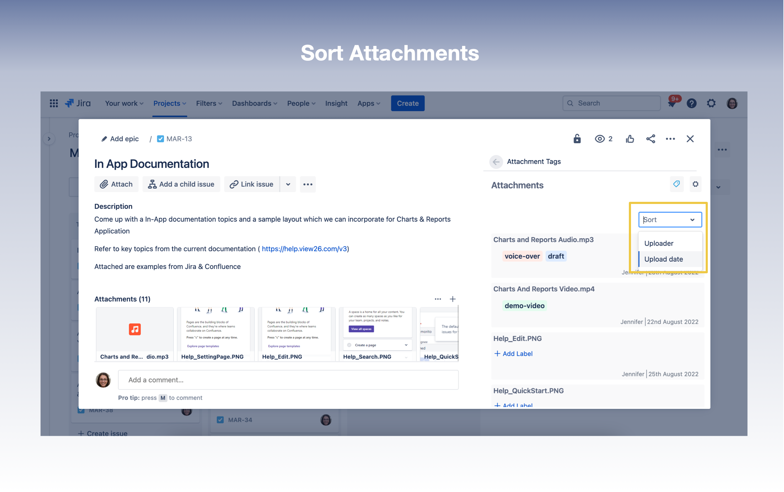 5. Sorting attachments by Uploader or Uploader date