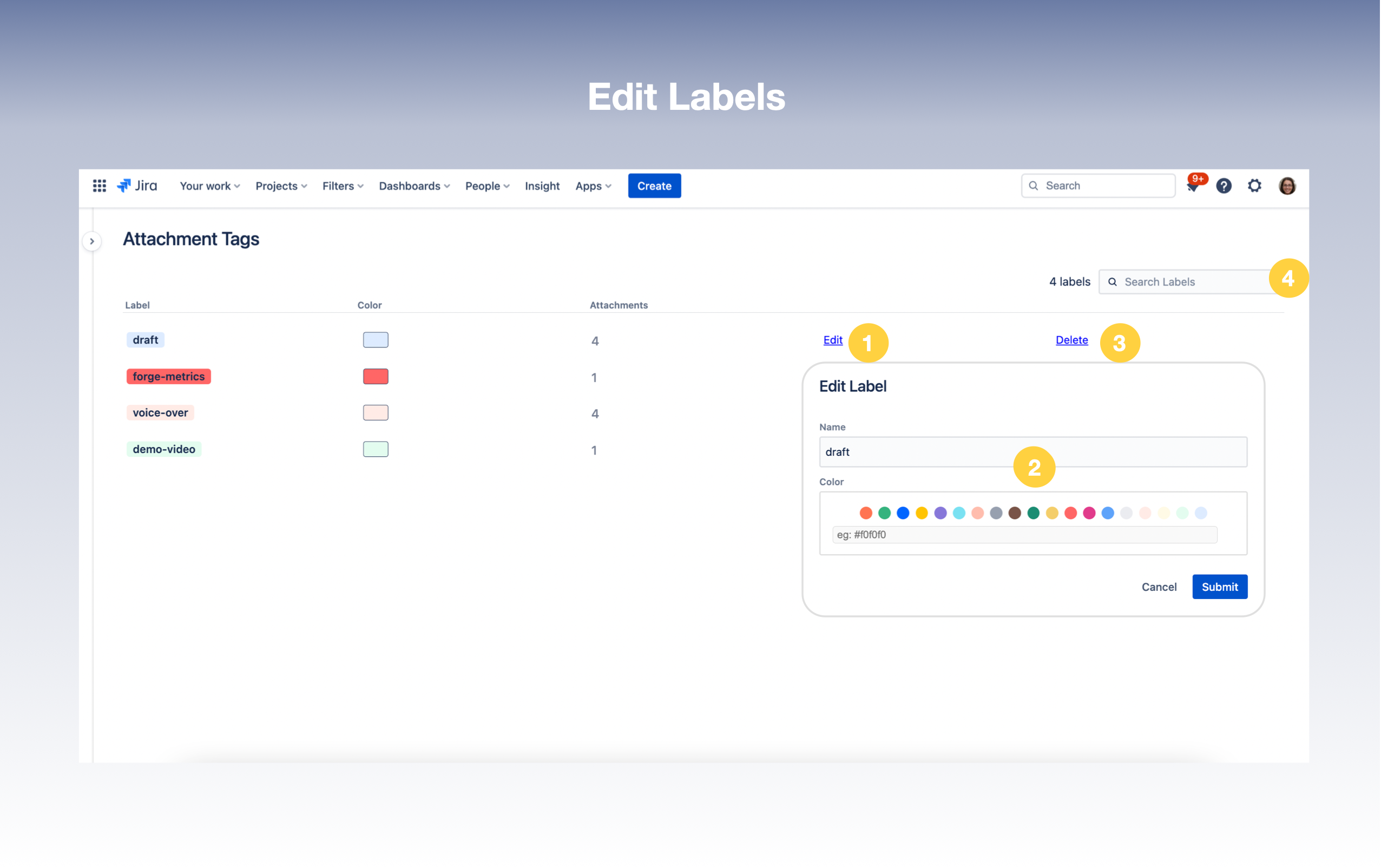 2. Editing Labels in Settings Page