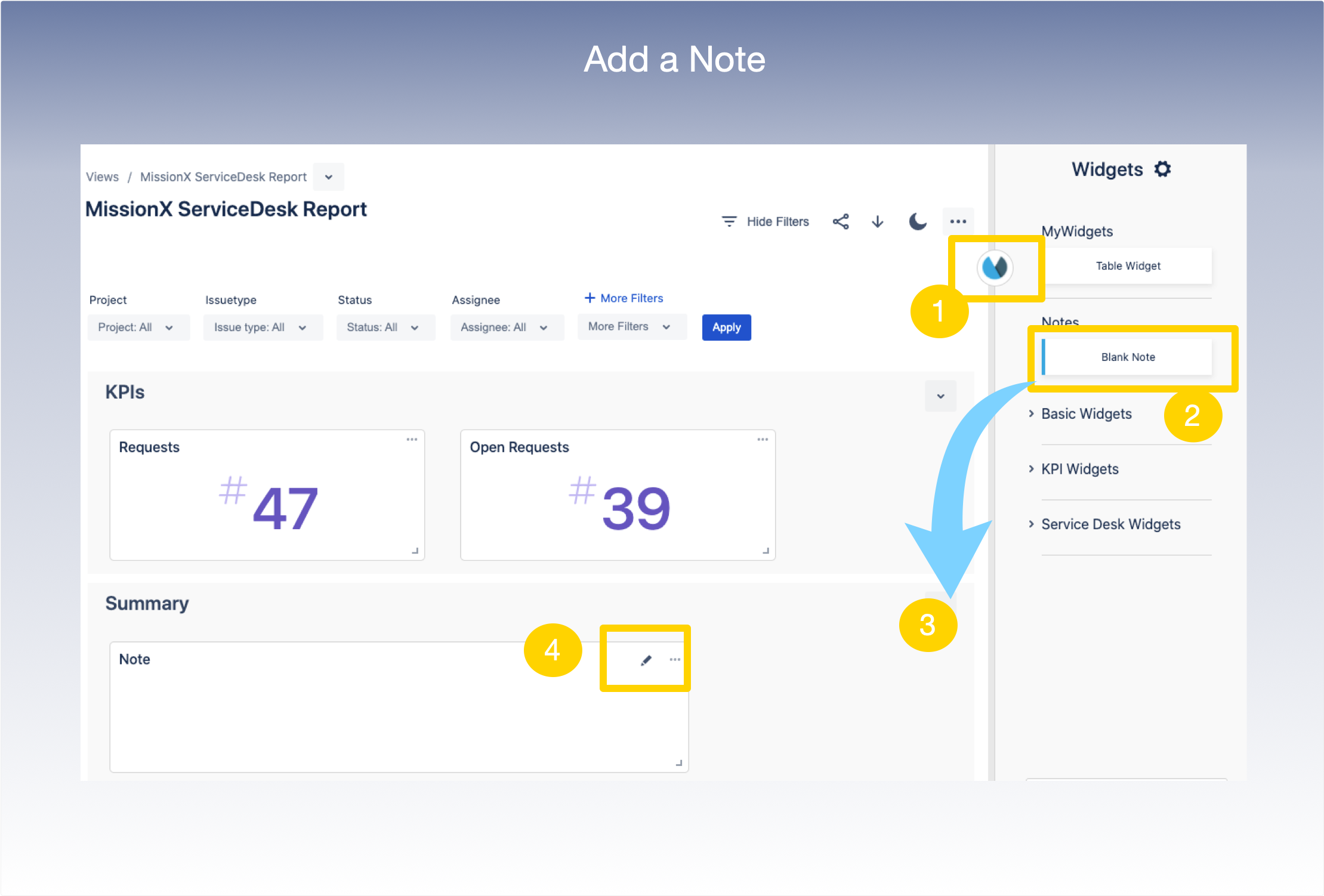3. Drag and drop the Blank Note Widget to the desired section. Use the drag handle to position the widget as desired.