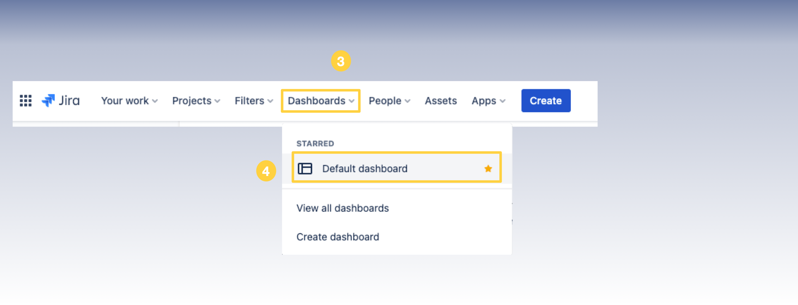 Click on Dashboards Menu in the Jira Global navigation-bar
