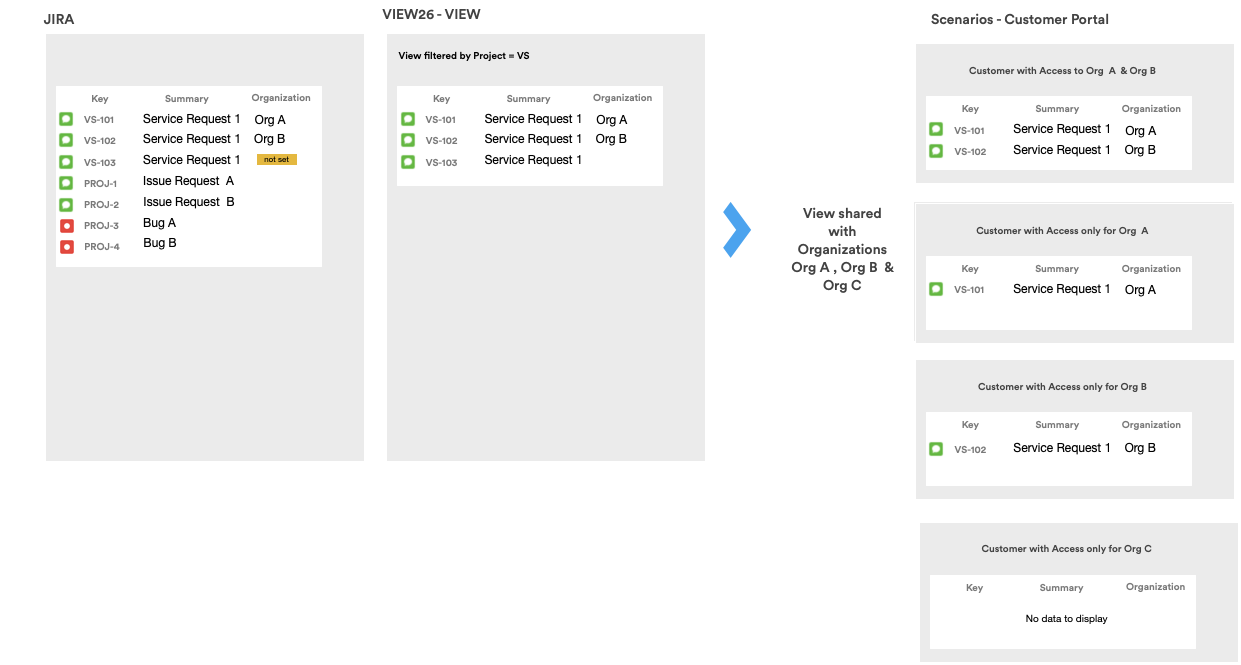 A customer may only view the issues which are shared with the Organizations they are assigned to.